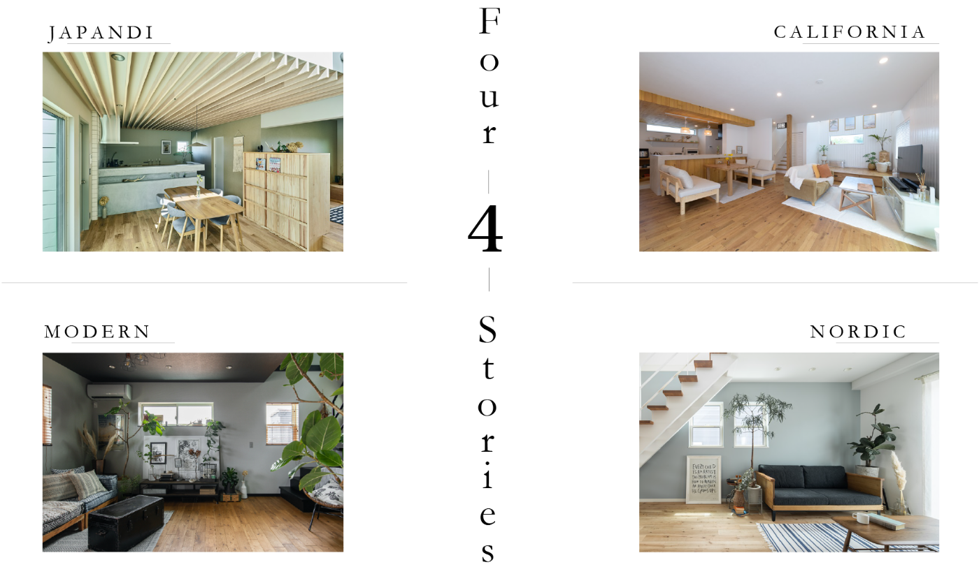 日本の和の静けさと北欧のシンプルな美しさ、決して流行に流されず、自分達の歴史と共に愛着が増していくスタイルです。
